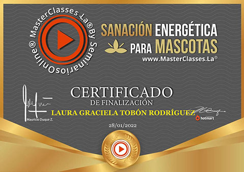 Desde entonces he tomado varias Certificaciones y Diplomados de Sanación Energética, Bioresonancia , Cristaloterapia, Biodescodificación, La Ciencia del Espejeo Canino y la Individualidad del Perro, Remedios con Aceites Esenciales, etc.